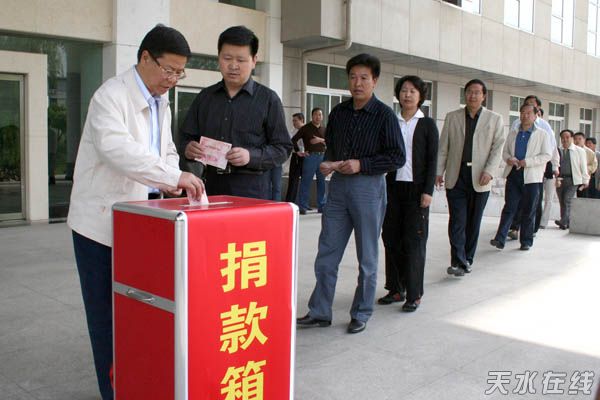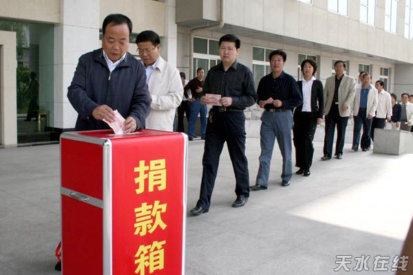 “一方有难,八方支援”。5月15日上午,麦积区四大组织机关及区直部门33个单位的450多名领导干部,在政府综合办公大楼前开展为灾区群众“献爱心”捐款活动。在短短半小时间内,共捐款38335元,充分体现了麦积区广大干部群众心系灾区人民、积极奉献爱心的一片深情厚意。(麦积区委外宣办)
