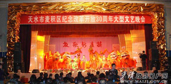12月26日晚,麦积区在区政府礼堂举行纪念改革开放三十周年大型文艺晚会——《放歌新麦积》。天水市政协副主席杨发元和麦积区四大组织在家领导一同观看了演出。