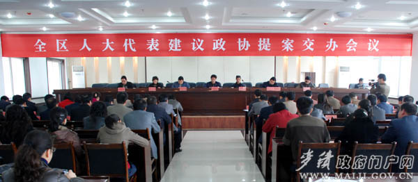 区委常委、副区长马兆让在讲话中重点就今年的“两案”办理工作明确要求,全区各承办单位要从发展社会主义民主政治的高度、从加快以改善民生为重点的和谐社会建设的高度和从贯彻落实科学发展观、提高执政能力的高度,进一步提高思想认识,不断增强做好人大代表建议和政协提案办理工作的责任感,突出民生、项目建设、新农村建设、企业改革发展及教育基础设施建设等工作重点,认真做好今年的“两案”办理工作。尤其要抓好36件市人大建议和政协提案的办理,抓好6件区人大主任督办件和6件区政协主席会议及主席会议成员联系案件的办理。注重组织方式、工作方法和办理机制的创新,进一步提高“两案”办理工作质量。强化措施,狠抓落实,保质保量完成今年的人大代表建议和政协提案办理任务,让区上领导放心,让代表委员满意。