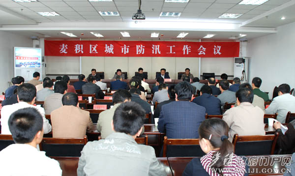 为了进一步提高防汛意识,强化防汛职责,做好今年城市防汛工作。4月22日下午,麦积区召开城市防汛工作会议。区委常委、副区长马兆让,区委常委、宣传部长臧志军,区人大副主任崔德祥,区政协副主席海安民出席会议,区防汛指挥部各成员单位和有关乡镇、街道办事处、部分企事业单位的负责同志参加会议。