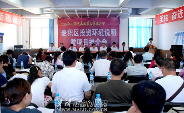 麦积区委常委、宣传部长臧志军主持推介会,区人民政府副区长邵长锋致辞并介绍了麦积区优越的投资环境,麦积区招商局重点介绍了麦积区的优势产业和相关的招商项目。