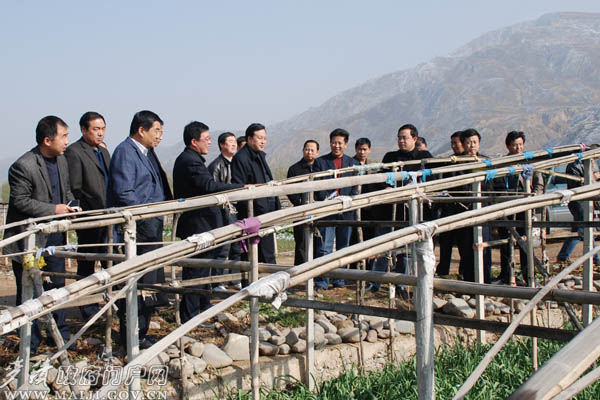 当天,考察团一行在武山县委常委、纪委书记张有信,县人大常委会副主任兰仓宝,县政府副县长纪永安,县政协副主席骆育喜及县委办、政府办、农办、农业局、蔬菜局等单位负责人陪同下,先后来到武山县农业科技示范园区、洛门镇文家寺蒜苗基地和城关镇清池村韭菜基地,通过实地参观、听取介绍、现场询问等方式,详细了解了该县蔬菜大棚在初期建设方面的成功做法和大棚蔬菜种植、管理、农民收入等基本情况,并就全县发展蔬菜产业的工作思路、具体措施、奋斗目标和取得的成效做了深入细致的考察学习。