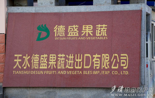 位于麦积区廿铺工业示范园区花牛中心区天水德盛果蔬进出口有限公司,是一家以果蔬产品收购、贮藏、保鲜、销售、果品精加工、生产苹果育果袋为一体的农业产业化民营企业,也是我区唯一一家具有进出口权、引进法国迈夫诺达清洗打蜡先进生产线的企业。该企业已通过ISO9001:2008质量体系认证,固定资产达1400多万元,带动农户10000余户,年出口能力达到5000吨、创汇140万美元。