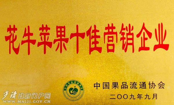 该公司在2009’中国苹果年会暨天水“花牛”苹果节上被授予“花牛苹果十佳营销企业”