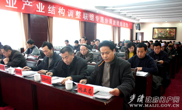 1月11日,参加麦积区政协六届四次会议的经济组、农林组、科技组和少数民族组全体委员聚集一堂,就全区农业产业结构调整进行专题讨论。委员们立足实际,畅所欲言、各抒己见,就各自关心和群众关注的农业产业结构调整方面的意见和建议积极谏言献策。