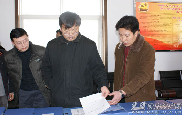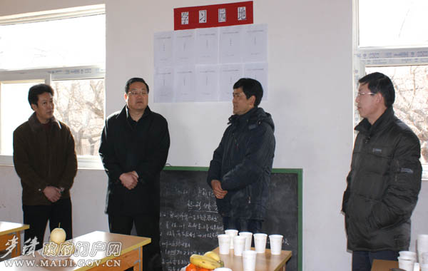 1月27日,天水市委常委、组织部长杨继军,市委组织部副部长、市人才办主任赵文,市委组织部副部长李吉祺,市委组织部部务委员裴贵军,市委组织部各科室科长和全市各县区组织部长,在麦积区委副书记马兆让,区委常委、副区长杨续祥,区委常委、组织部长张思佳等人的陪同下,先后深入我区新阳镇胡大村和周家湾村、花牛镇南山苹果协会、麦积镇、区教育局,就“四议三双”活动、学习实践活动、新农村建设、农村党员干部现代远程教育、乡土人才培训、党内激励帮扶试点、机关党建等特色创新工作和基层组织建设工作进行了现场观摩检查指导。