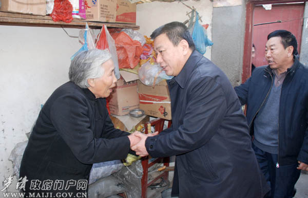 新春来临之际,城市困难群众的生活尤其牵动着麦积区四大组织领导的心。当天下午,区领导蒲军、胡福林、马兆让、李加峰一行还先后来到单亲妇女谢香菊、孤寡老人宫玉兰和特困职工韩晓全家中,送去慰问物资和资金。在单亲妇女谢香菊家,区领导要求同行慰问的区妇联和居委会负责人,要想方设法解决其生活中遇到的困难,免费为她提供一些技术培训,帮助其早日脱贫。在特困职工韩晓全家中,蒲军、胡福林关切地询问他家里的收入来源、工作现状,看到韩晓全一家家庭美满,区领导十分欣慰,鼓励他要自强自立,乐观地面对生活中暂时遇到的困难,争取尽快过上好日子。72岁的孤寡老人宫玉兰,多年来在区领导和道北街道办事处的关心下,生活有了很大改善,看到区上领导又来看望自己,老人激动地热泪盈眶。蒲军、胡福林等领导详细了解了老人的饮食起居,并一再叮嘱同行的区直有关部门和办事处负责人要多关心老人的生活,确保老人生活不出问题。
