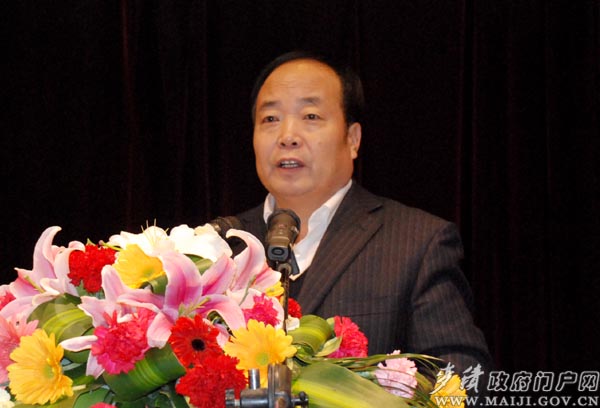 蒲军指出,2009年是麦积经济社会发展取得显著成效的一年。经过各级党政组织和广大干部群众的共同努力,全区经济保持平稳较快发展,城乡建设扎实推进,社会大局和谐稳定,党的建设、精神文明建设和各项社会事业都有了长足的发展和进步,提前一年实现了“十一五”规划目标。他强调,2010年,是全面推进“关中—天水经济区”建设的第一年,也是全力巩固“十一五”发展成果,精心谋划“十二五”发展的重要一年。我们要积极实施“13345”发展战略,做大工业、提升农业、活跃商贸、开发旅游、提促城建、改善民生,大幅度提高综合实力,大范围掀起建设高潮,大气力优化发展环境,大决心提升执政能力,全力推动麦积经济社会跨越式科学发展。