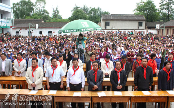 少先队员为麦积区委副书记、区长张克强佩戴红领巾