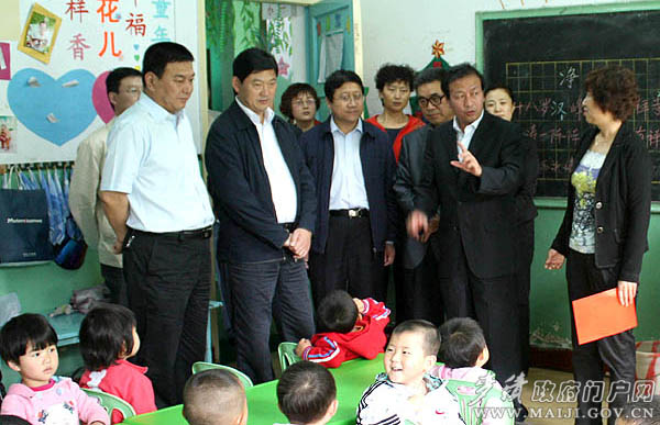 张应华代表市委、市政府向孩子们致以节日祝贺,向辛勤培育祖国花朵的园丁们表示亲切的问候,并勉励孩子们要奋发图强,努力成长为祖国的栋梁之才,用优异的成绩回报党和政府以及社会各界的厚爱。在检查建新路幼儿园门卫处及食堂的安全、卫生情况时,张应华要求,学校一定要高度重视校园安全和学生安全工作,设置保安岗位、配务保安装备,建立一套完善的制度,以强烈的责任感做好学生安全工作;同时,学校工作人员一定要注意食品卫生,确保孩子们的饮食安全。