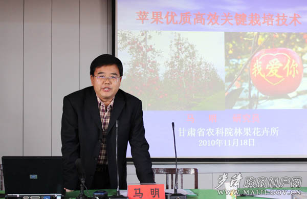 为了全面提高全区果农素质,11月19日,麦积区举行花牛苹果产业人才队伍培训班启动仪式。区委副书记马兆让出席会议并作重要讲话。区委常委、组织部长张思佳主持会议。省果树研究所副所长、研究员马明应邀出席会议并作专题讲座。