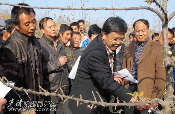 马兆让要求,各有关部门、乡镇要结合“一城两园”建设,突出重点,全力抓好南山花牛苹果基地果园管理和全区优质果品生产工作。要全面做好冬季果园的管理工作,切实做到组织、责任、措施三到位,确保果园修剪、追肥、病虫害防治等关键措施落到实处。要强化引导示范和果农的技术普及培训,抓住冬季农闲的有利时机,组织专业技术人员和果农技术骨干,以宣传动员为切入点,统一思想认识,广泛发动群众全部参与,充分发挥典型引路、示范带动的作用,全面提高广大果农的果园管理水平和全区的优质果品生产率。要以这次产业人才培训为契机,制定切实可行的冬季果农培训计划,有针对性地开展果农技术普及培训,推动全区果品产业上规模、上档次、上水平。参训人员要结合各自实际,有目的、有重点地对一些问题进行深入思考和研究,进一步提高自己的理论水平、政策水平和分析问题、解决问题的能力,力争通过这次学习培训,使自己在思想、业务和工作能力上都有更多的收获,全力推进全区果品产业发展实现栽植良种化、基地规模化、管理集约化、生产标准化、技术现代化、果农知识化、服务社会化和经营产业化。要珍惜机遇,扎实工作,确保圆满完成这次冬季果农培训任务,使果品产业更好地服务于社会主义新农村建设,为建设富裕和谐新麦积做出新的更大贡献。科技人员和农民技师要大力推广先进建园技术,千方百计提高建园质量。