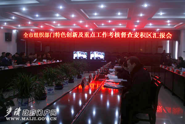 1月17日下午,市委组织部副部长、市委考核办主任赵文带领全市组织部门特色创新工作考核组一行,深入麦积区实地观摩考核组织部门特色创新及重点工作。区委书记蒲军,区委副书记、区长何东参加汇报会;区委副书记杨续祥,区委常委、组织部长张思佳及相关部门、乡镇负责人陪同考核,并参加了汇报会。