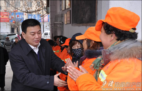 在华瑞热力公司和区环卫局,区领导的到来受到了一线职工的热烈欢迎,并主动上前握手致敬。蒲军说,春节期间,万家团圆,各位职工却要舍小家、顾大家,继续坚守工作岗位,平时工作最为辛苦,长年如一日,为麦积城市温暖和环境清洁做出了巨大贡献,取得的成绩有目共睹,受到了全区人民和社会各界的好评,区委、区政府不会忘记你们。希望你们继续发扬主人翁精神,进一步认真做好本职工作,为麦积经济社会跨越式科学发展做出应有的贡献。
