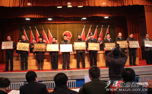 区委常委、副区长赵晓东宣读了《中共天水市麦积区委、天水市麦积区人民政府关于表彰2010年度麦积区政法综治工作先进集体和先进个人的决定》和《中共天水市麦积区委、天水市麦积区人民政府关于表彰2010年度麦积区禁毒工作先进集体和先进个人的决定》。
