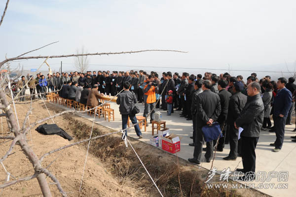 3月9日下午,麦积区在马跑泉光坡梁召开全区花牛苹果园管理提质增效活动启动会议,深入贯彻落实市、区农业农村工作会议精神,紧抓当前春季建园有利时机,整合科技人才资源,推进果园标准化管理,实现花牛苹果提质增效,推动全区果品生产再上新台阶。