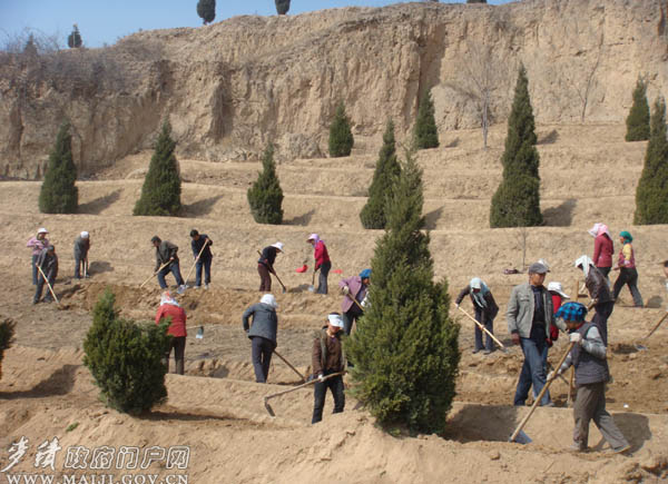 北山生态产业示范园麦积段核心区位于花牛镇肖家庄北山,建设总面积2000亩。工程自今年2月底启动实施以来,按照“四季常青、三季有花、两季有果、春花秋实、层林尽染、绿美结合”的建设思路,坚持“规划扩绿、见缝插绿、农路配绿、空地造绿”和山、水、田、林、路综合治理的原则,采取统一规划、项目管理、工程监理、公开招标、责任到人、市场运作、社会监督、部门联动、整体推动的措施,目前各项工作进展顺利。规划2处园林小品1处已初具雏形,栽植洒金柏5300株,红叶小檗14700株;“一横五纵”道路网络建设横向道路已全面打通,其他3条纵向道路正在实施;500亩梯田建设已全面铺开;水保林、建园水平台整地完成210亩,地埂挖穴6380个;上水工程新打机井2眼,开挖蓄水池、铺设管网正在有序进行。