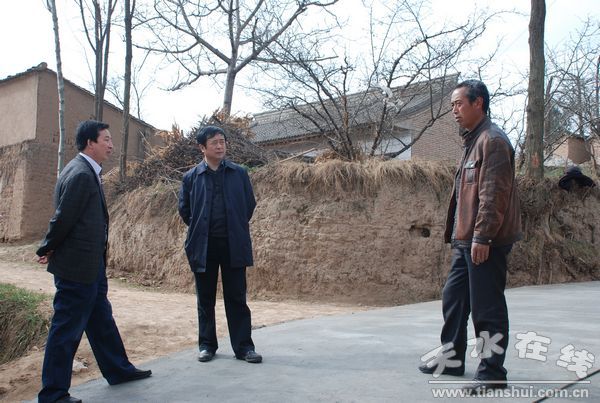 4月13日上午,市委常委、秘书长蒋晓强带领市委办负责同志,深入扶贫联系点麦积区花牛镇董塬村,就道路硬化、学校建设等帮扶项目实施情况进行了调研。他强调,要加强帮扶项目建设质量管理,整治村容村貌,发展优势产业,努力在加快新农村建设、增加农民收入方面取得实实在在的效果。