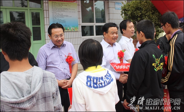 区委副书记、区长何东,区委常委、宣传部长臧志军,区委常委、马跑泉镇党委书记王彦军,区人大副主任程鹏,副区长王曙辉,区政协副主席屈光平等领导及区关工委、教体局、民政、计生局、妇联、团委负责人出席仪式并为受捐助学生发放了捐助金。