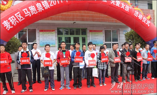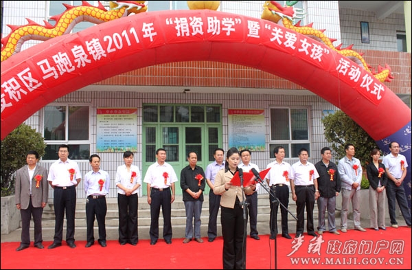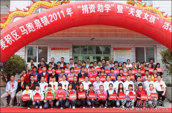 8月21日上午,马跑泉镇举行捐资助学暨关爱女孩活动仪式,现场为该镇45名高、中考中取得优异成绩的贫困家庭学生发放捐助金137000元,本次资助侧重于一个家庭同年考上多个大学生、单亲家庭、孤儿、享受计生政策户等特殊学生,捐助活动受到社会各界的好评。