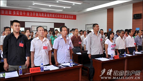 在与会代表和工作人员的共同努力下,马跑泉镇第八届人民代表大会第一次会议在圆满完成各项议程后,在雄壮的国歌声中胜利闭幕。