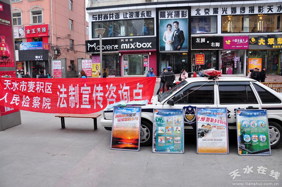今年是“六五”普法启动之年,也是“12.4”全国法制宣传日确立11周年。1 2月4日,寒风凛冽,麦积区在二马路步行街开展了一场以“深入学习宣传宪法,大力弘扬法治精神”为主题的“12·4”全国法制宣传日大型宣传咨询活动。区委宣传部、区依法治理领导小组办公室、区司法局、区公安分局、区检察院、区执法局等30余家依法治区成员单位参加此次活动。