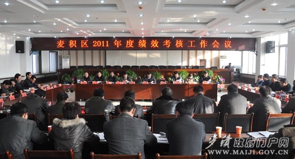 12月12日下午,麦积区召开2011年度绩效考核工作会议。区委副书记张思佳,区委常委、纪委书记吴方勇,区委常委、副区长张永刚,区委常委、副区长邵长锋,区委常委、宣传部长王曙辉,区人大常委会副主任李加峰、程鹏,区政协副主席汪怀定、张国平出席会议。区委常委、组织部长乔振华主持会议。