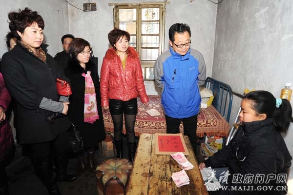 当日下午,麦积区女性创业者联谊会会员30余人,一走进位于麦积区实验小学对面雷敏临时的家,她们的到来使原本阴暗潮湿的小屋变得暖意融融,雷敏坐在板凳上,面前摆放着一张老式的书桌,旁边放着两支拐杖,放置在房子中间的炉子没有丝毫暖意。麦积区妇联主席谢小兰一进门便拉住雷敏的双手,鼓励其坚定信心,战胜病魔,早日放下拐杖独立行走,并代表妇联送上了500元慰问金,祝他们全家过一个幸福祥和的元旦佳节;麦积区实验小学校长史健将装着500元的大信封交给雷敏,并拍着她的肩膀,连连说道,好好学习是对学校和社会的最好报答;麦积区女性创业者联谊会会长夏小娟、副会长杨芳和刘海霞带领30名联谊会会员一起将3000元爱心善款交给雷敏,勉励她好好学习,以超人的毅力战胜病魔,从而更好地回报学校、报效社会,将来对祖国建设做出自己应有的贡献。顿时,雷敏的母亲连声地说着,谢谢好心人的救命之恩!她抱住副会长杨芳嚎啕大哭、泪如雨下,在场的所有人的眼含泪花,久久地不愿离去。