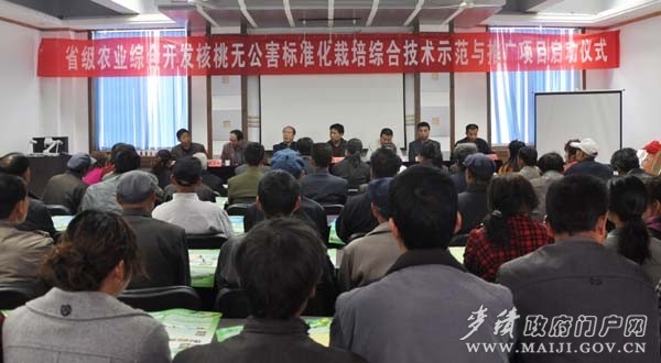 4月17日,省级农业综合开发核桃无公害标准化栽培综合技术示范与推广项目在麦积区中滩镇举行启动仪式。副区长王彦军出席仪式并讲话。