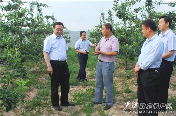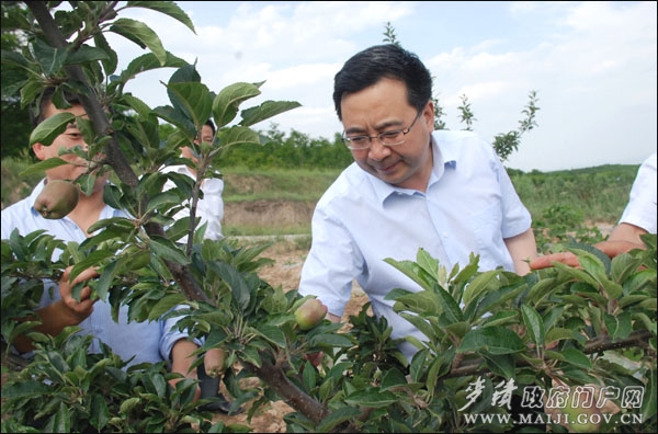 6月11日下午,麦积区委书记张智明带领农业、果业局主要负责人,对花牛、马跑泉两镇果园遭受冰雹灾害情况进行专题查看。