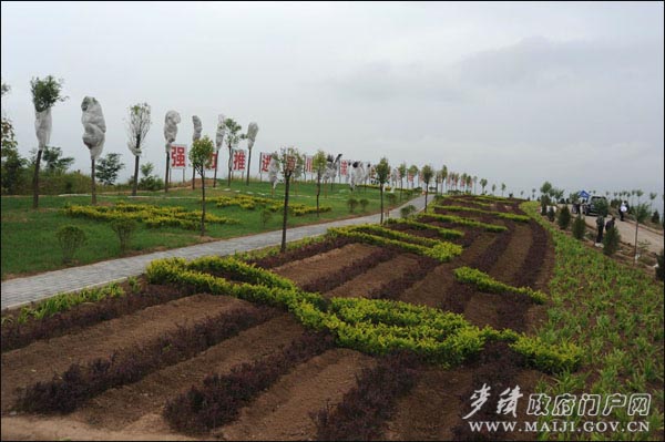 ——南北二山二期绿化工程。城郊南北二山二期绿化工程是市委、市政府确定的又一重大林业生态工程。计划今年实施荒山造林3363亩,栽植樱桃、核桃219亩,绿化大地埂18.31万米,绿化堤崖大坎16.6万平方米,绿化道路28.1公里,建成荒坡小绿地1处50亩。截止目前,完成荒山荒坡绿化2016亩,栽植胶东卫矛、雪松、塔柏、侧柏等苗木33.8万余株;绿化农机路10公里,绿化大地硬4公里。