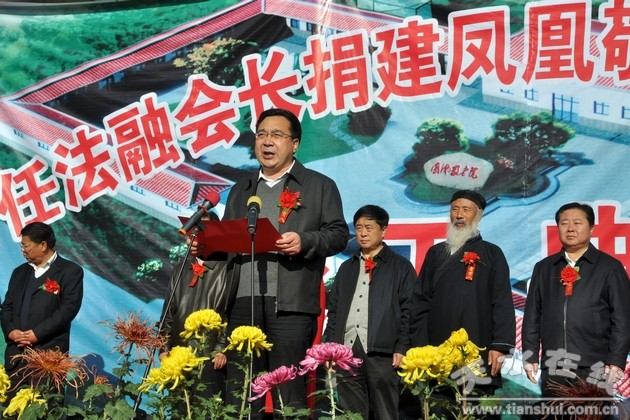多年来,任法融会长积极为家乡的建设与发展慷慨捐资捐款,通渠引水、架桥修路,助学育人、繁荣文化,扶贫济困、广布德泽,使家乡群众普受恩惠。竣工的凤凰敬老院慈善工程,是任法融会长造福家乡的又一善行义举,对于促进麦积区养老事业必将起到有力的推动作用,这也深深地饱含着任法融会长对家乡人民的一片赤诚之情。