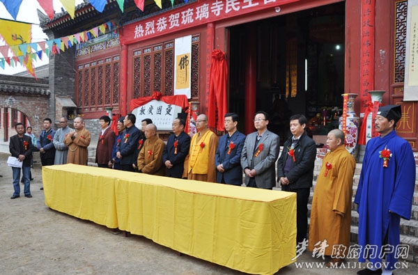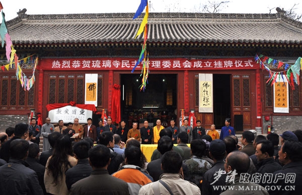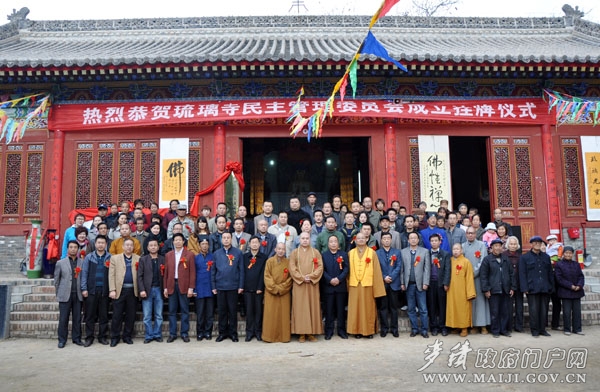 (市政协副主席张克强等市区领导为琉璃寺民主管理委员会成立揭牌)