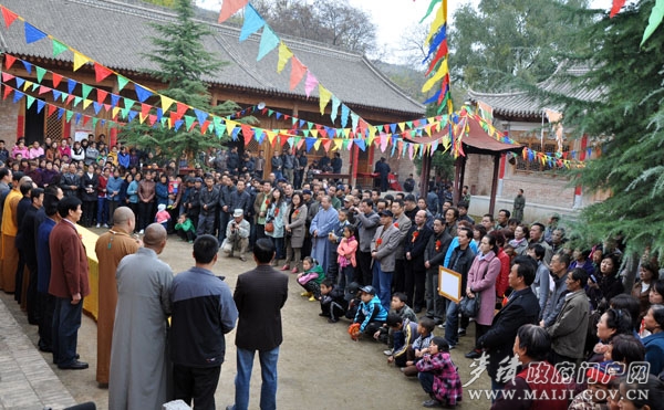 市政协副主席张克强,市委统战部副部长马继伯,市宗教局局长马云珍,市民委主任吕惠安;麦积区政协副主席汪怀定、张国平,区委统战部、区民族宗教事务局等部门相关负责人;有关省、市、区佛教界以及区爱国宗教团体负责人等参加了仪式。