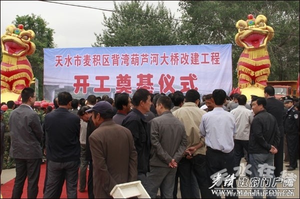 ——中滩背湾葫芦河大桥建设工程于4月7日开工。目前已完成平整场地3500㎡;架设临时电力线路700m;钻孔灌注桩16根;钢筋混凝土立柱6根,工程预计2013年8月建成通车。