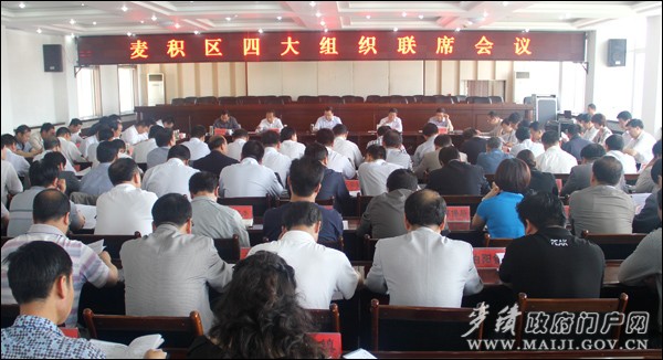 6月9日,麦积区召开四大组织联席会议,全面听取全区重点项目建设情况,分析全区经济运行面临的基本形势,进一步统一区四大组织领导以及乡镇、部门领导干部的思想认识,督促大家寻找问题、找准差距,靠实责任、强化措施,全力加快全区重点项目建设进度,确保完成今年的各项工作任务。