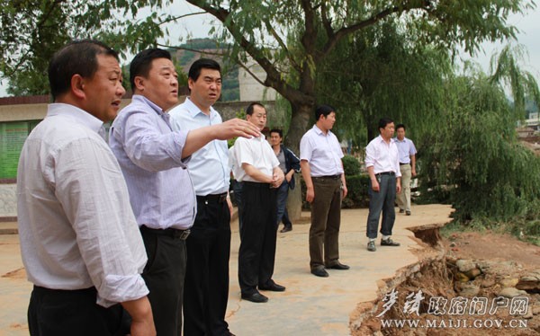 6月22日下午,省减灾委办公室主任、省民政厅救灾处处长李剑一行,在市民政局副局长晏平、区委副书记张永刚、副区长杨根林等陪同下,先后来到受灾严重的街亭中学、街亭卫生院、麦积中学、麦积山植物园山庄、麦积镇后川村和甘泉镇峡门村、高家庄,实地查看灾情,看望慰问受灾群众,并指导灾后重建工作。每到一处,李剑都详细询问受灾群众目前的生活状况,并叮嘱当地干部一定要妥善安置好灾民的生活。