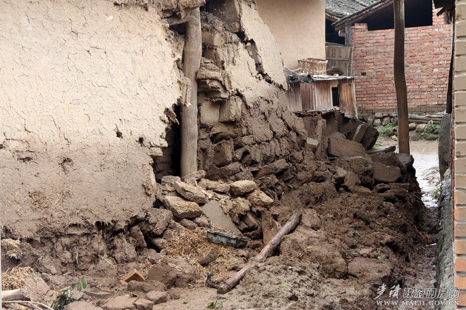 (土房被浸泡倒塌)