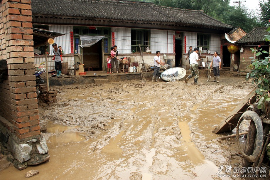 7月24日晚至25日,麦积区境内遭受今年以来第四次强降雨袭击,麦积、甘泉、党川、伯阳、元龙等乡镇再次受灾。特别在党川乡,由于受上游娘娘坝镇灾情影响,从25日早上6时40分起,境内白家河、冷水河开始暴涨,洪水冲毁了沿线刚刚修复的道路、桥梁,通往下游村组的交通中断;11时许,白家河流量达到每秒1300立方米,(曲溪水文站监测数据),洪峰高度达8米,洪水冲毁河堤、淹没农田、漫过村民修建的挡水墙,灌入新庄村新庄组、阮坑组,致使该村53户371间房屋进水,倒塌16间,形成危房123间,损失惨重。此外,洪水还冲毁了白家河上6米宽60米长大桥一座,通往子庙沟、马场等村的交通中断。目前,党川乡冷水、新庄等村通讯、电力仍然中断,干部群众只能徒步出入救灾。由于预警及时,驻村干部迅速组织群众转移,本次暴雨及洪灾未造成人员伤亡。