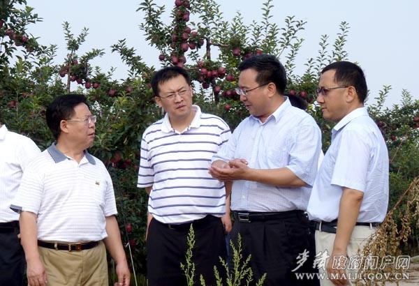8月15日下午,国家开发银行监事会监事耿建云、国家开发银行甘肃省分行行长杨文清一行,在副市长蔡建明,区委书记张智明,副区长杨铁森、袁锋等陪同下,深入麦积区新民苹果种植农民专业合作社苹果种植基地,对农业产业发展和农民专业合作社融资贷款情况进行了专题调研。