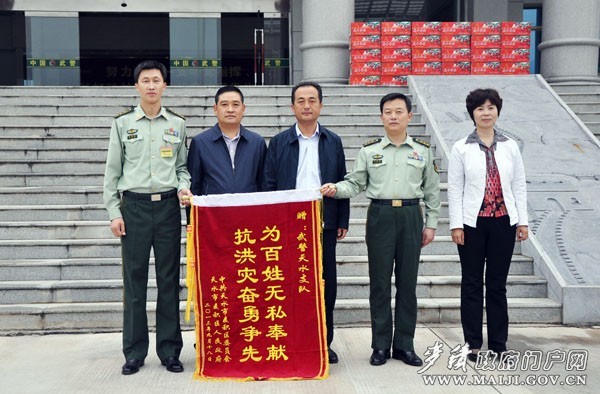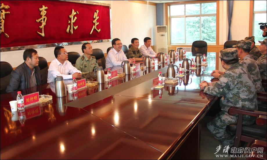 区委副书记、区长成少平,区委副书记张永刚,区政协副主席王春芳一行深入到驻区武警天水支队、68212部队、96363部队、武警天水森林大队、省地矿一勘院,看望慰问抢险救灾人民子弟兵,送上了锦旗、慰问品和节日祝福。成少平代表区四大组织和全区63万人民向驻区部队官兵致以节日的祝福,并祝愿全体官兵身体健康,工作顺利,万事如意。他说,在今年麦积区遭受历史以来最大灾害的关键时刻,驻区部队官兵发扬部队优良传统,在多处抢险救灾应急现场,给予了地方政府和群众莫大的关心、应急支持和鼎力帮助,为夺取抗洪抢险救灾取得胜利、维护地方和谐稳定和经济发展、人民群众安居乐业做出了卓有成效的贡献。各驻区部队官兵感谢麦积区领导对驻区部队事业的关心和支持,并表示将一如既往地履行好自身职责,扎实工作、无私奉献,为麦积经济社会发展做出新的贡献。
