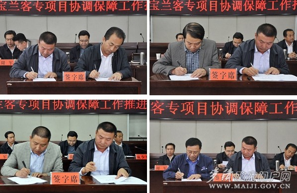 会上,兰新铁路甘青公司副总经理周军就宝兰客专项目建设中涉及的相关问题进行了现场解答,并就协调保障工作提出建议;区委常委、副区长王彦军通报了当前宝兰客专服务协调保障工作进展情况;区委副书记、区长成少平代表区委、区政府与宝兰客专协调领导小组签定了维稳责任书,宝兰客专协调领导小组组长王彦军与宝兰客专沿线10个乡镇、6个标段及中铁一局签定了维稳责任书。