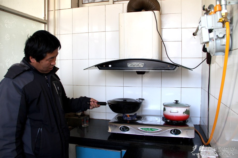 2013年12月29日,正是中午做饭时间,记者走进麦积区中滩镇渠刘村村民李亚峰家却不见烟囱冒烟。疑惑间,李亚峰笑着说:“我们村很多农户都开始用沼气做饭烧水了,过去在厨房做饭烟熏火燎,现在做饭烧水用上沼气,家里干净了不少,并网、材料安装和燃气灶都不要钱,用沼气只掏一个买气的钱。1方气才花1.5元,上次花了12块钱买的气已经用了有20天了,花的钱比用液化气少多了。”