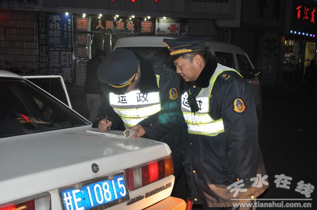 在重点路段对班线车辆、公交出租车辆的营运证照、票价执行情况、“三防”设施进行排查,适时向市局申请,抽调市局稽查大队稽查人员,协助麦积运管分局,由分局王局长亲自带队,区公安局治安大队配合,不定时进行夜间突击检查,重点打击经营者反映强烈火车站广场、麦积汽车站、城乡结合部等区域从事非法经营的“黑车”,五县出租车在麦积区从事道路运输经营,出租车不按规定使用计价器、驾驶员无从业资格证、不携带道路运输证件,班线车辆、出租车辆私涨票价等行为。