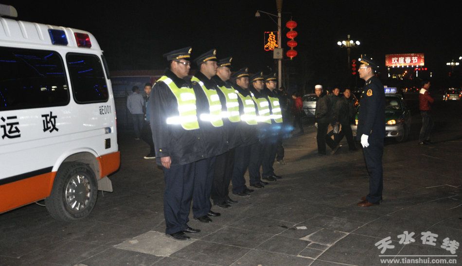 1月27日晚,由分局局长王立勋带队,市区两级道路运输管理部门协同稽查。稽查一中队和稽查二中队分别在火车站、二马路十字、马跑泉十字、公园路等,对参营春运车辆的道路运输证、承运人责任保险单、驾驶员从业资格证、消防设施和驾驶员经营行为等进行了路检路查,并对查出的不规范经营行为做了现场处理。