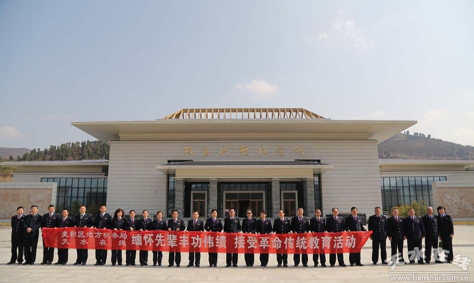 春天的广香河畔,花蕊初绽、翠柏含青,万物复苏、风和景明。2014年3月8日,在党的群众路线教育实践活动深入开展之际,麦积区地方税务局党组书记、局长李林虎,党组副书记、纪检组长贾锦云及班子成员率领麦积区地方税务局党组成员、部分党员中层干部30余人,走进陇南市两当县,在红色两当参观“两当兵变”纪念馆,缅怀革命先辈的丰功伟绩,接受革命传统教育。