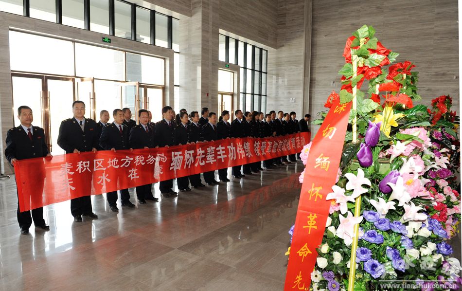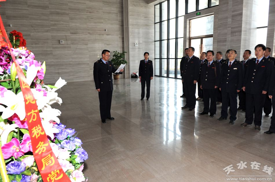 (麦积地税局党组成员及党员干部向习仲勋等革命先辈敬献花篮仪式)