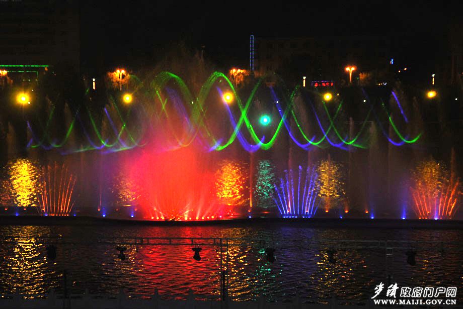 随着音乐的响起,一条条水柱冲了起来,在空中变换和摇曳着各种美妙“身姿”,而从池底放射出五颜六色的绚丽彩光,红的、黄的、蓝的、紫的,绿的……相互交错,照射在大小不同高低不一的水柱上,金灿灿,银亮亮、绿茵茵、蓝艳艳,无穷的变化,无比的耀眼!