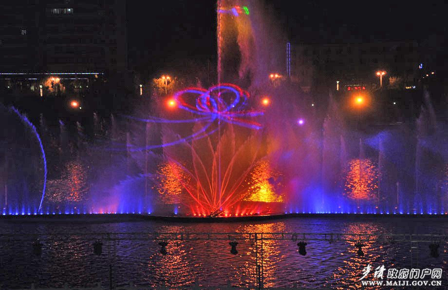 6月21日晚9时许,渭滨公园演绎广场水声潺潺、灯光交错,大型实景水影表演《龙城水韵》及文艺汇演活动在这里拉开帷幕。