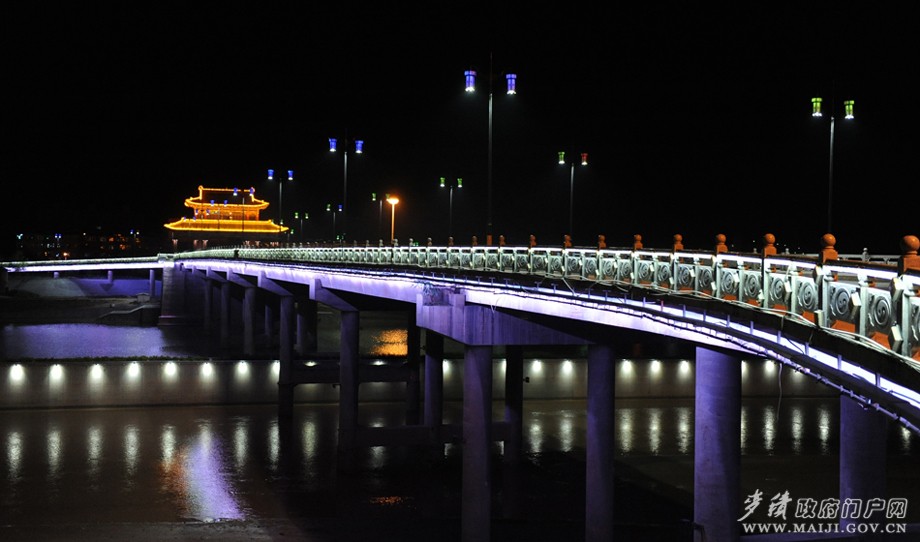 如今,升级改造后麦积区渭河“三桥”,充满了大都市的光彩和灵动,生机勃发,彰显城市魅力。与渭河风情线以及刚刚投入使用的大型水景音乐喷泉遥相呼应,共同扮靓麦积之夜。